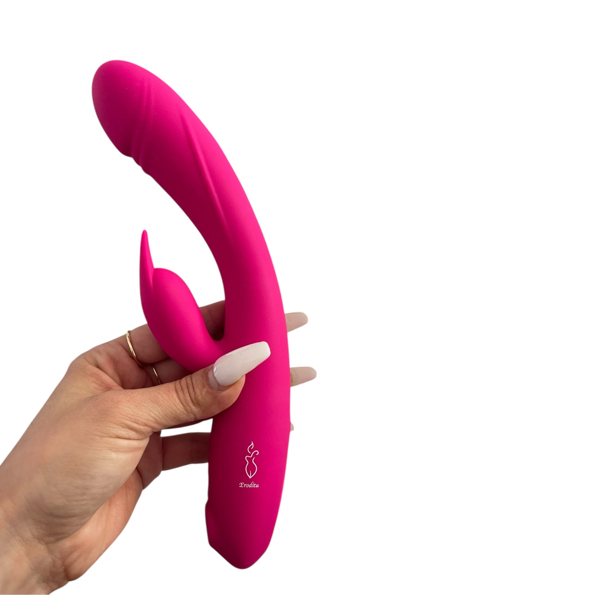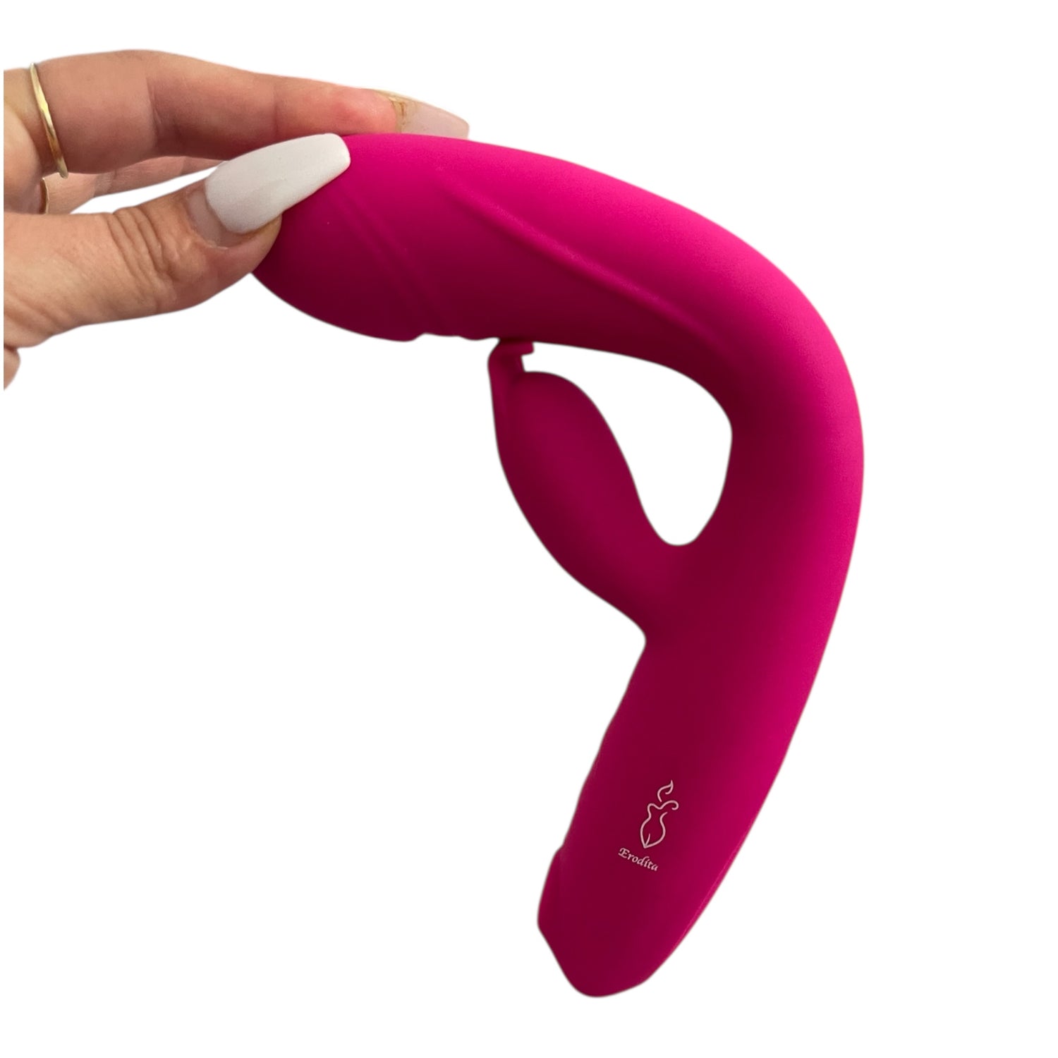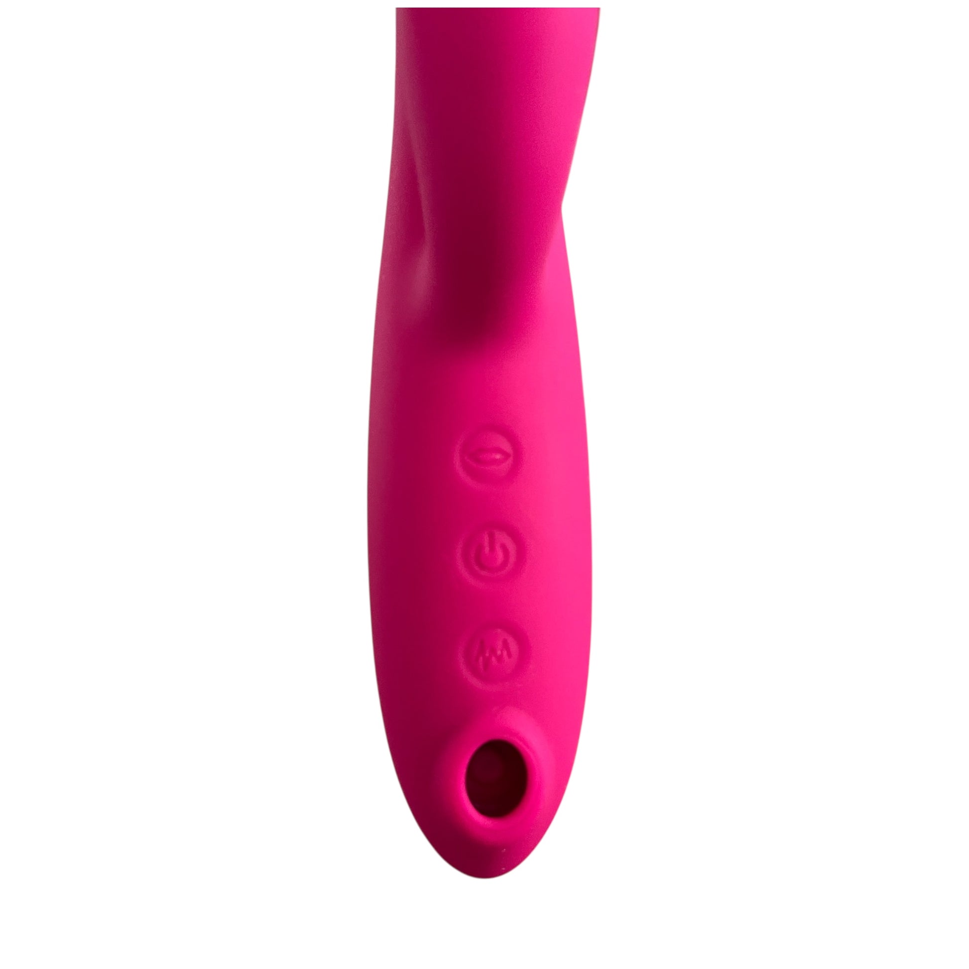 Introduce suavemente el brazo largo mientras el externo queda sobre el clítoris. Usa los botones para explorar los modos de vibración.